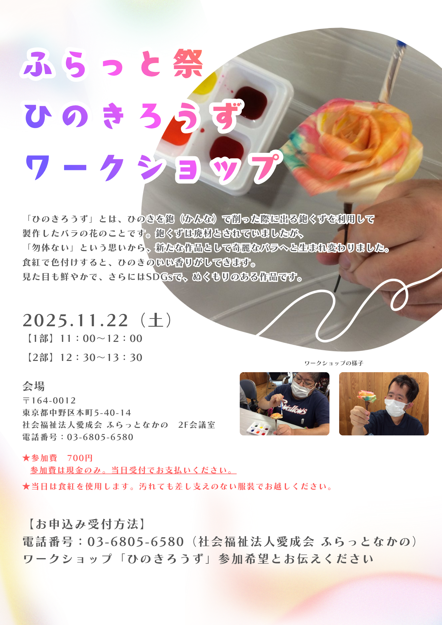 今年の見どころは、「あどりぶFlour」の皆様にご協力をいただいて行う≪ひのきろうず≫のワークショップ!